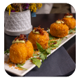 350 gr de pulpo rebozado sobre una base de patatas revolconas, acompañado de una mayonesa ahumada de chipotle, piñones y sal negra.